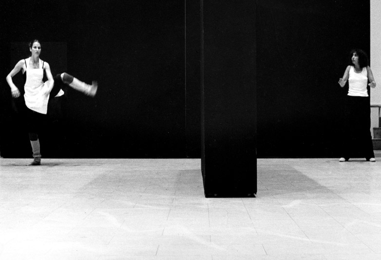 Splitting is a 9-part suite for dancer based upon the theory that every living cell contains within itself the entirety or the One. The method Cellular Movement begins with an extensive vocabulary of gestures which point to the development of language. Gestural sequences, designated as hieroglyphs or dialects, give the dance the character of clearly articulated speech independent of meaning, symbol or mime. Although each of the parts draws on a bank of pre-selected gestures, much of Splitting is improvised. The movements build rhythmic drive through an irrational sequence of metrical divisions determined by the dancer. Virtuosity is located in the visual and psychological command of the rhythmic interval as well as in the precision and unpredictability of the gestures themselves.